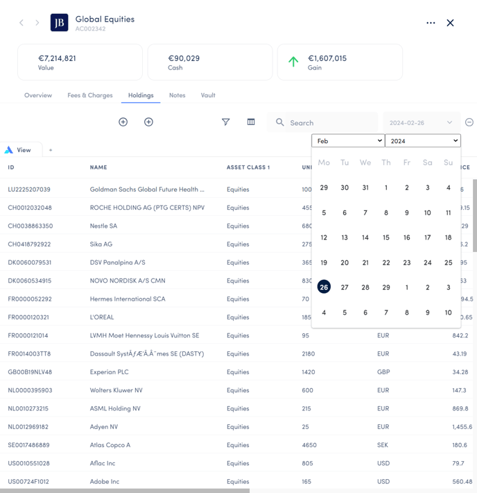 Once imported, the holdings will appear on the Account card in the holdings section on the date specified in the import document. Based on the example shown in the video above, the image below shows the imported holdings: